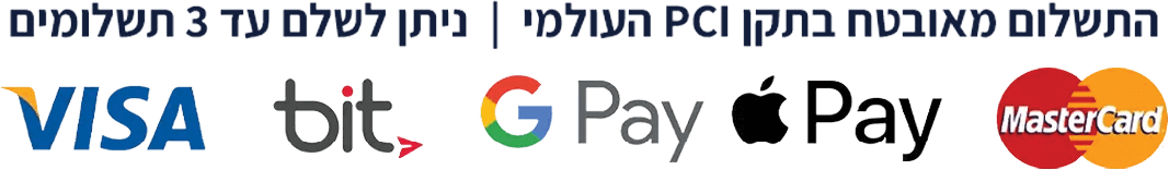 אפל פיי, גוגל פיי, אשראי, ביט ואמצעי תשלום נוספים כדי שתוכלו להזמין בקלות ובבטיחות.