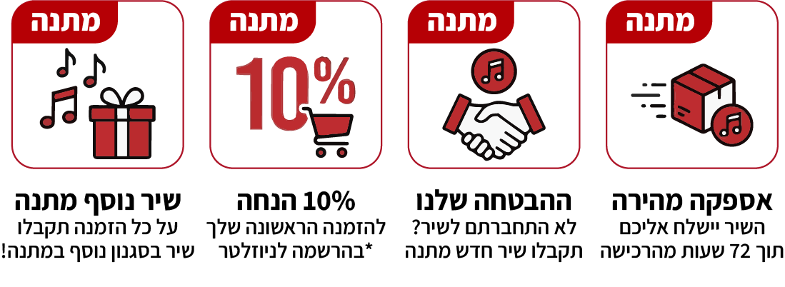אנחנו יודעים שלפעמים השיר הוא מתנה של הרגע האחרון, ולכן אנחנו מציעים שלושה מסלולי אספקה לבחירתכם: